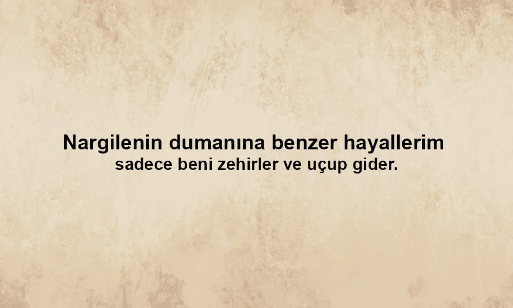 Nargilenin dumanına benzer hayallerim sadece beni zehirler ve uçup gider.
